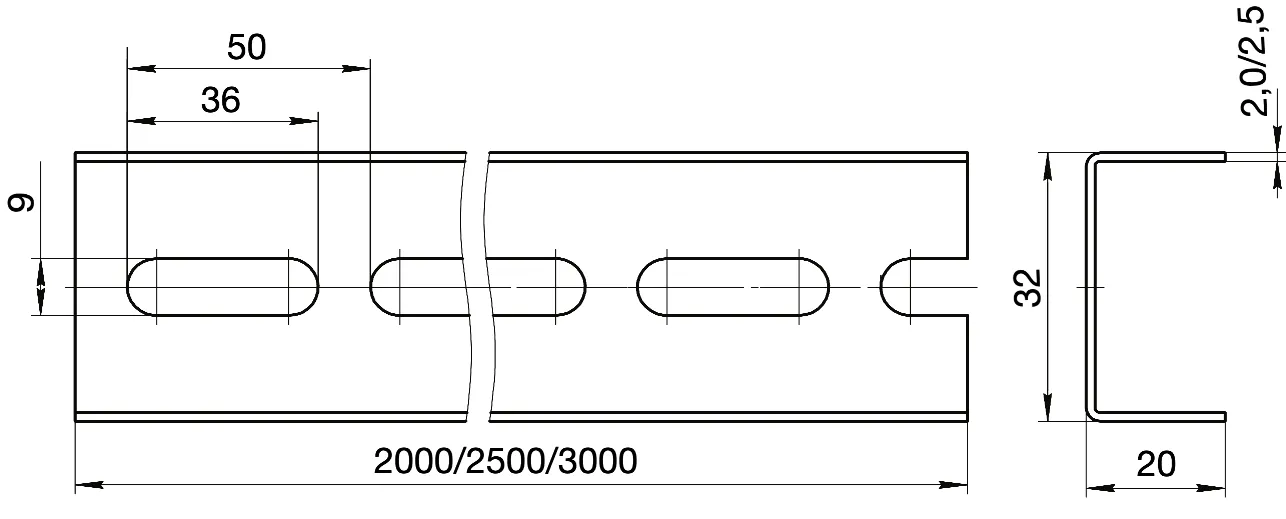 Швеллер К-347 L-1000 (2,0мм) УТ2,5 цинк