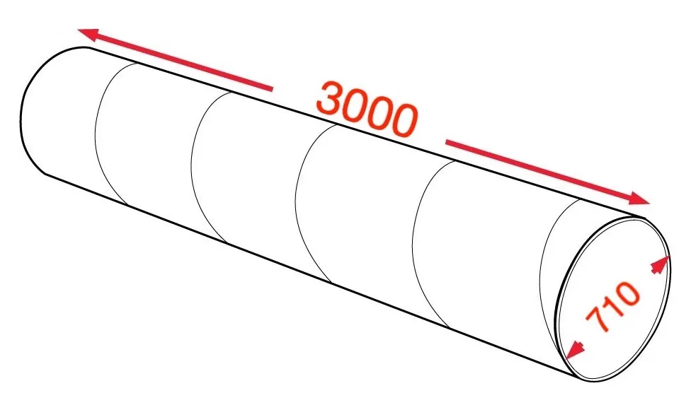 Воздуховод спирально-навивной 710х3000мм (0,7мм) УТ2,5 цинк